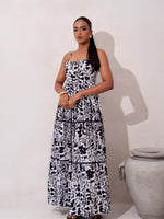 LADDER LACE DETAILED PRINTED MAXI DRESS