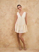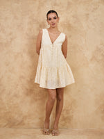 V NECK TIERED MINI DRESS - BEIGE