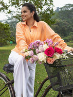 STRIPED PRINTED BUTTON DOWN OVERSIZED SHIRT