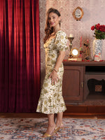 BUSTIER DETAILED PUFF SLEEVED MIDI DRESS