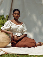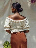 PUFF SLEEVED FRILL DETAILED CROP TOP - OFF WHITE